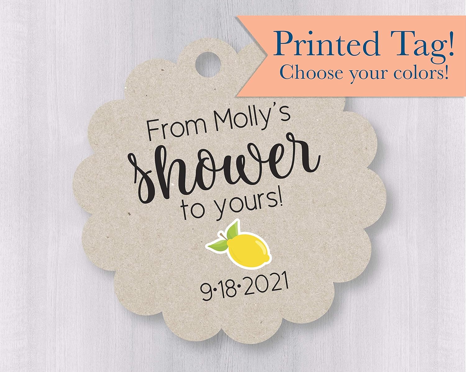 If you're sending items to your guests and would prefer to attach a personalized tag, we offer beautiful options in different sizes, shapes, and designs to match your shower theme.